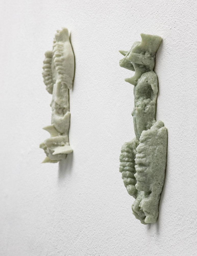 The works were created using a method that the artist calls reverse archaeology: animal bones are pressed into sand, and the cavity they create is filled with liquid clay. What is missing becomes form – the invisible becomes visible. Instead of excavating the past, she draws out new forms and stories.